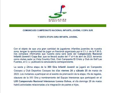 Aviso para Categorías Gira Infantil Juvenil