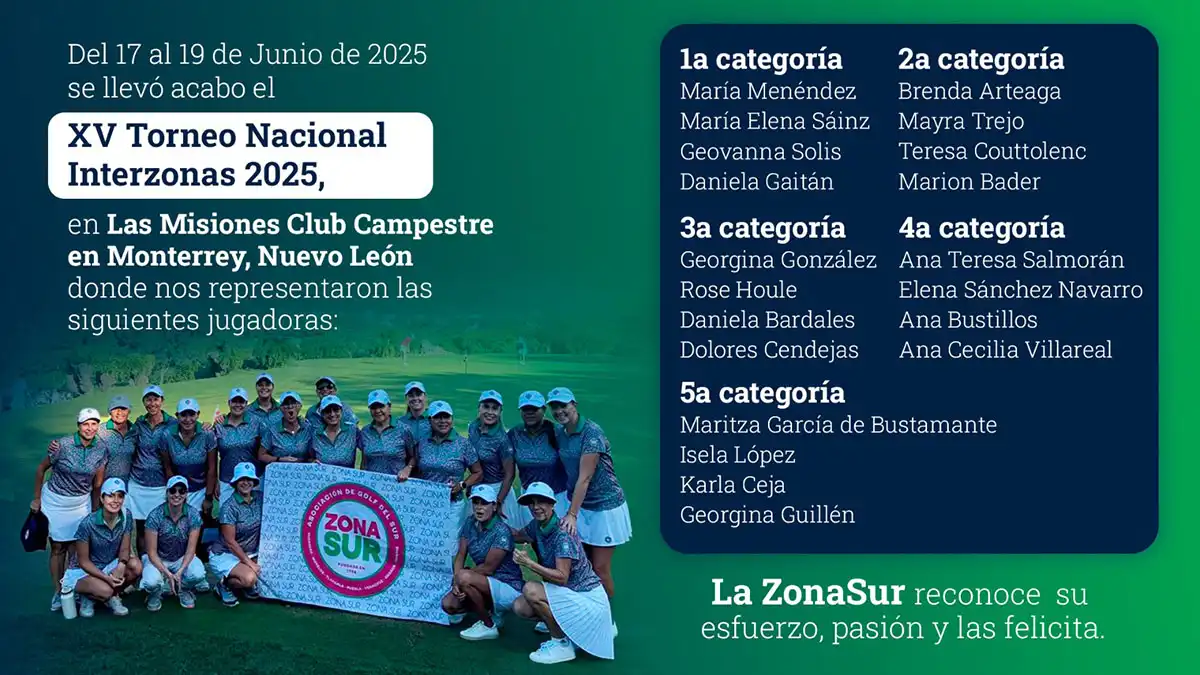 Del 17 al 19 de junio de 2025, Las Misiones Club Campestre de Monterrey, Nuevo León, fue sede del XV Torneo Nacional Interzonas, una de las competencias más importantes del golf amateur femenino en México.